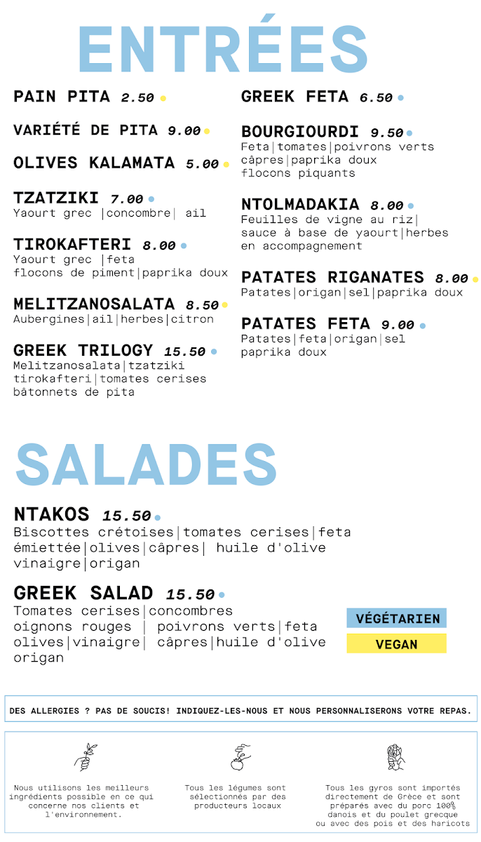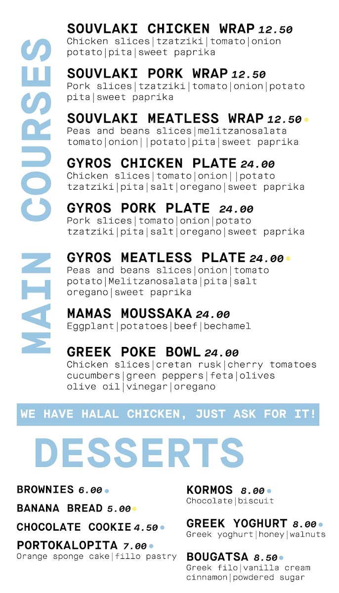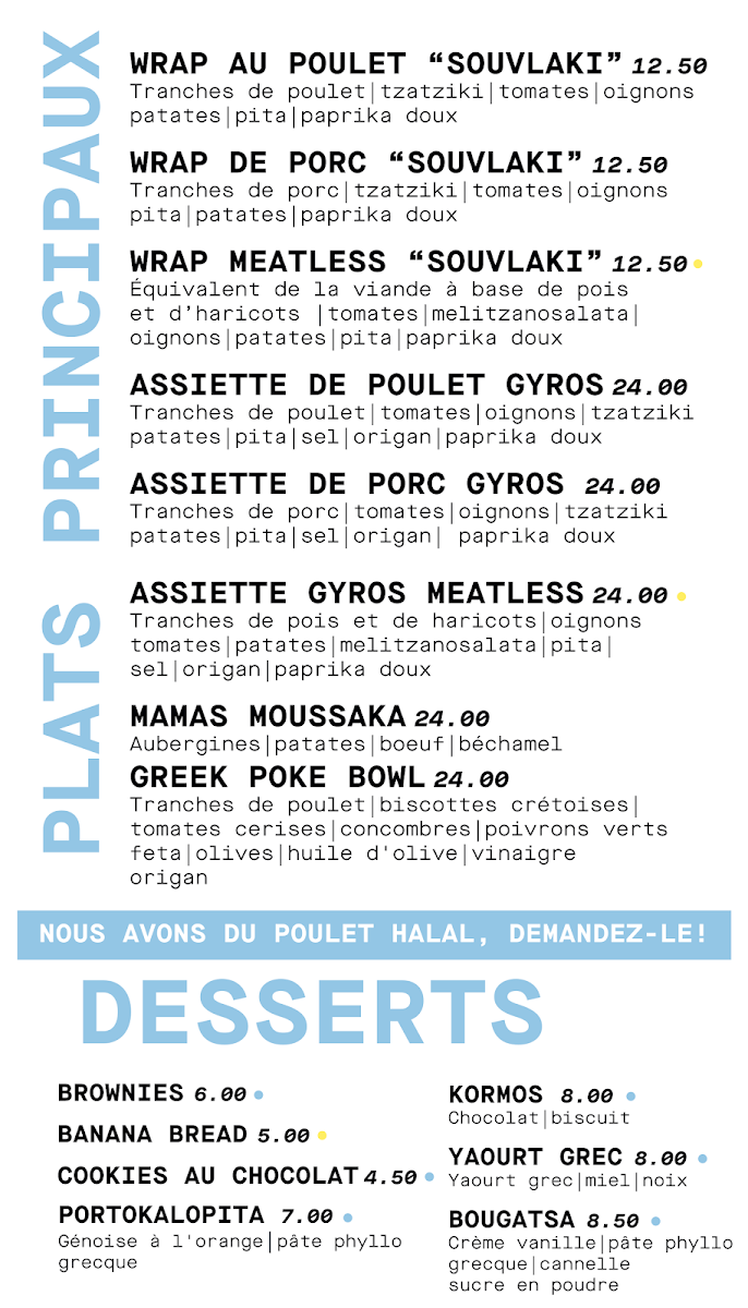 The menu is a treasure trove, featuring mouthwatering souvlaki wraps with chicken, pork, or a meatless option, all priced at just CHF 12.50. For a more substantial meal, the gyros plates, priced at CHF 24, offer generous portions of tender meat alongside vibrant sides. Don't miss a taste of mama's moussaka or the healthy Greek poke bowl, both brimming with flavor..
